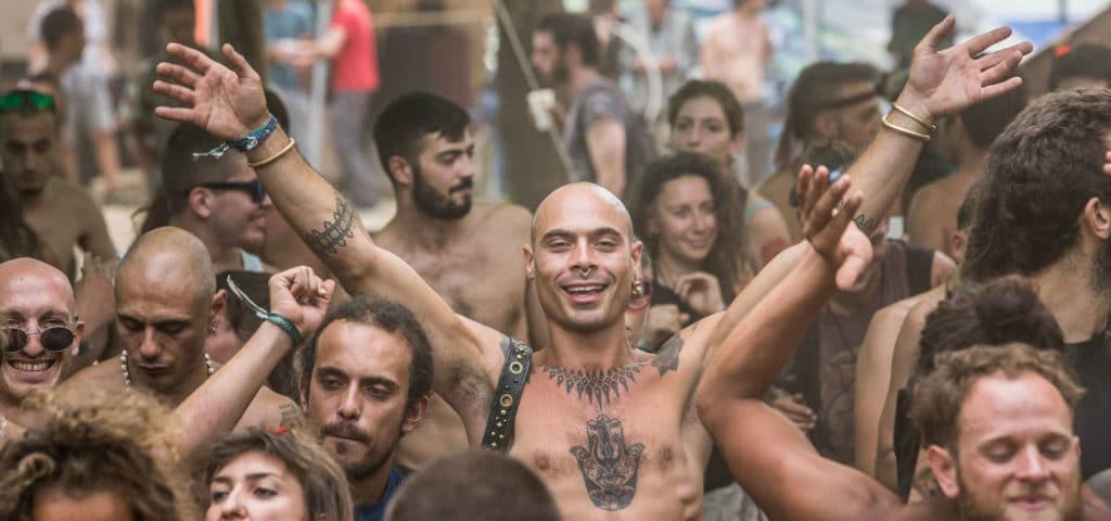 The festival rises on a hill within the green Tuscia Reserve. Just a two-minute walk away, a waterfall creates an ideal oasis to recharge.
